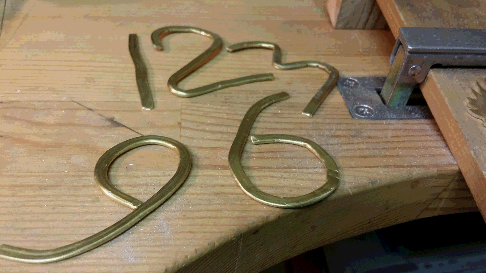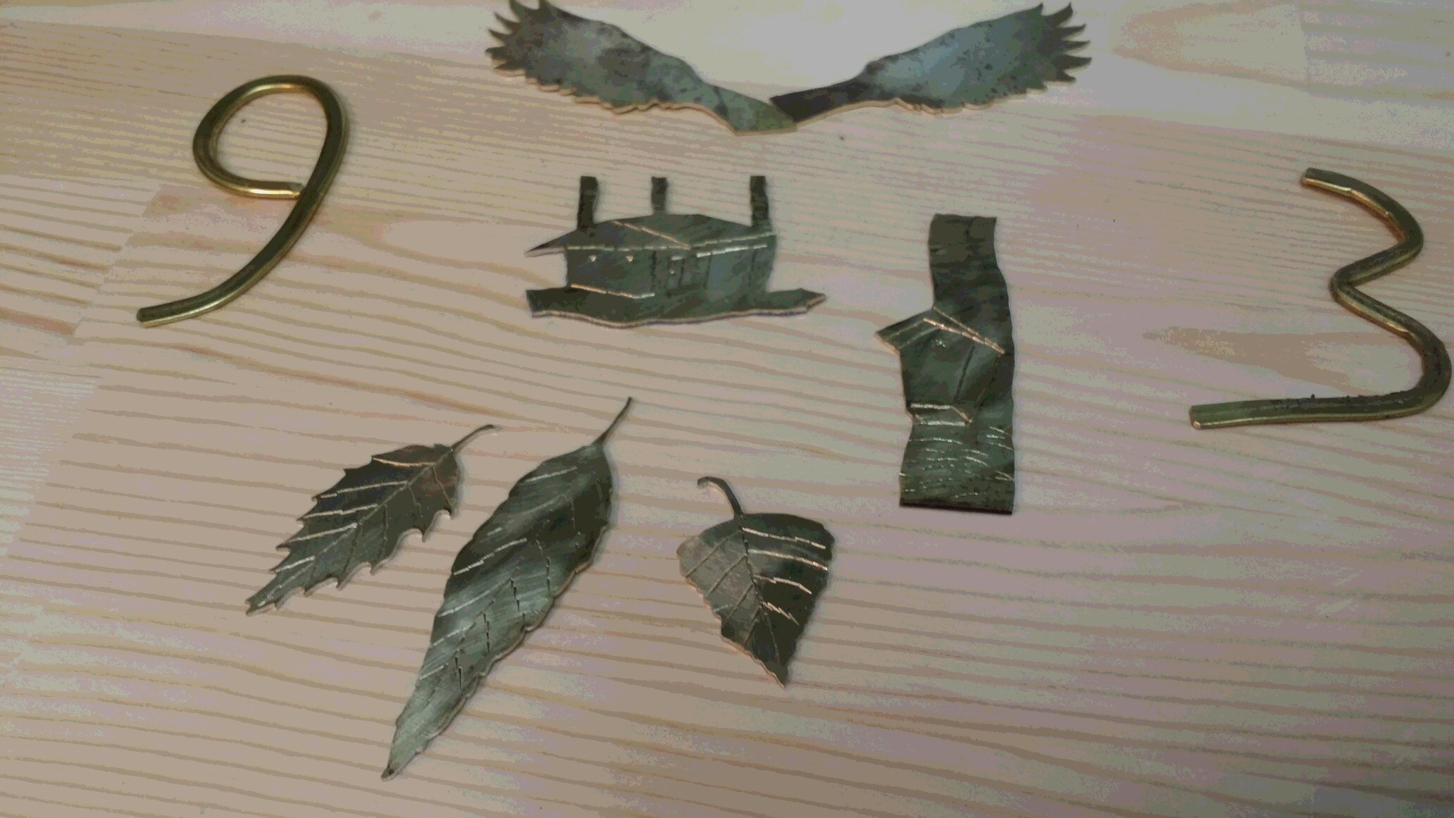 金属を糸ノコで切り出してタガネと呼ばれる工具で作成。